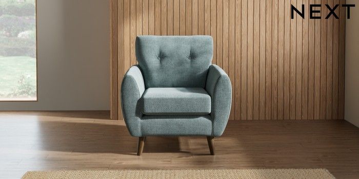 7.2.10 Wilson Buttoned Back Armchair Chunky Chenille Light Teal Green Retro Tapered - Mid | Made Click here to use our website with more accessibility support, for example screen readers