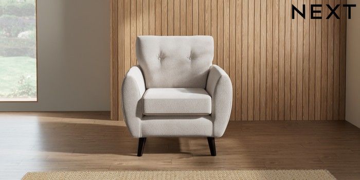 7.2.10 Wilson Buttoned Back Armchair Chunky Chenille Oyster Retro Tapered - Dark | Made Click here to use our website with more accessibility support, for example screen readers