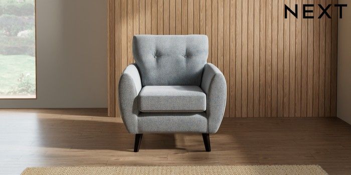 7.2.10 Wilson Buttoned Back Armchair Chunky Marl Mid Grey Retro Tapered - Dark | Made Click here to use our website with more accessibility support, for example screen readers