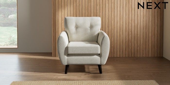 7.2.10 Wilson Buttoned Back Armchair Chunky Texture Oyster Retro Tapered - Dark | Made Click here to use our website with more accessibility support, for example screen readers
