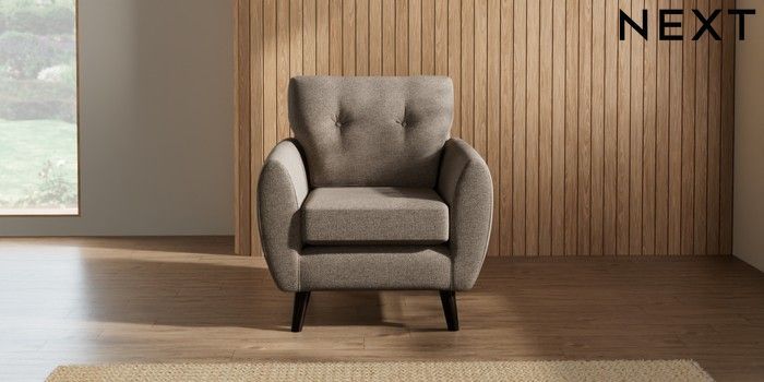 7.2.10 Wilson Buttoned Back Armchair Chunky Weave Dark Natural Retro Tapered - Dark | Made Click here to use our website with more accessibility support, for example screen readers