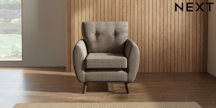 7.2.10 Wilson Buttoned Back Armchair Chunky Weave Dark Natural Retro Tapered - Mid | Made Click here to use our website with more accessibility support, for example screen readers