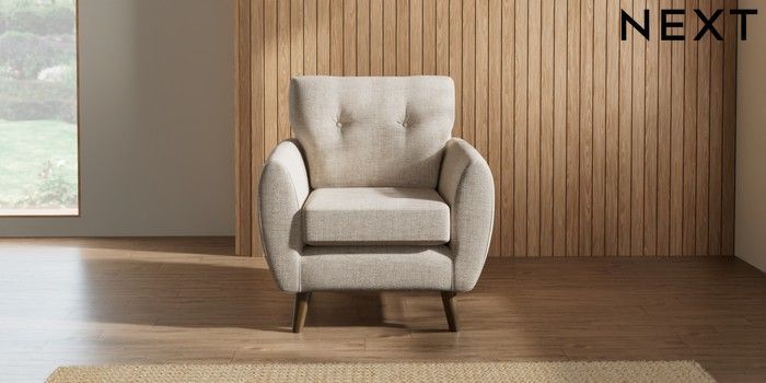 7.2.10 Wilson Buttoned Back Armchair Chunky Weave Mid Natural Retro Tapered - Mid | Made Click here to use our website with more accessibility support, for example screen readers