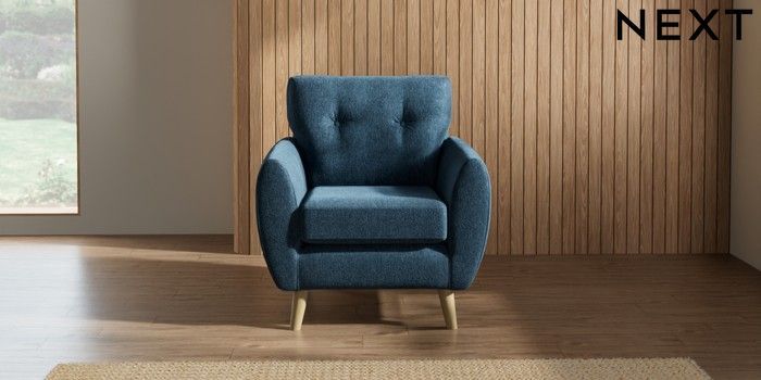 7.2.10 Wilson Buttoned Back Armchair Cotswold Chenille Dark Blue Retro Tapered - Light | Made Click here to use our website with more accessibility support, for example screen readers