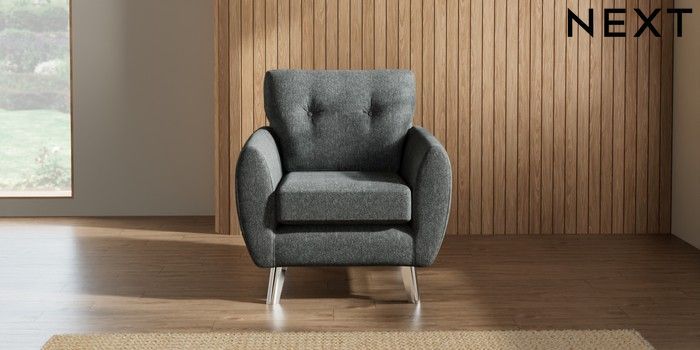 7.2.10 Wilson Buttoned Back Armchair Cotswold Chenille Dark Grey Metal Tapered - Chrome | Made Click here to use our website with more accessibility support, for example screen readers