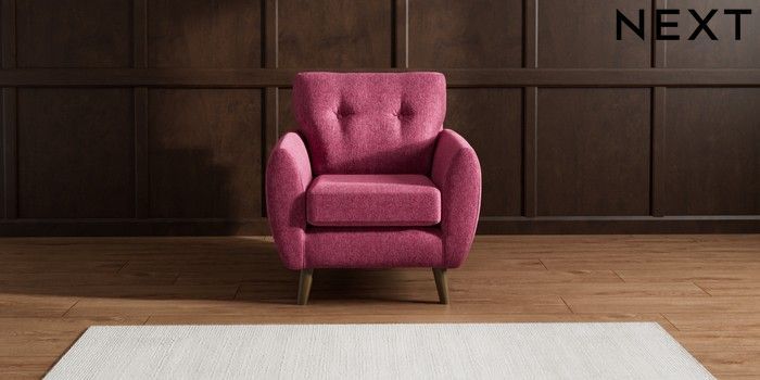 7.2.10 Wilson Buttoned Back Armchair Cotswold Chenille Dark Raspberry Pink Retro Tapered - Mid | Made Click here to use our website with more accessibility support, for example screen readers
