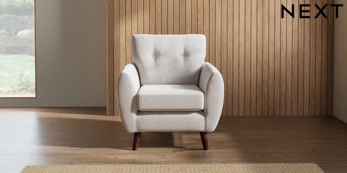 7.2.10 Wilson Buttoned Back Armchair Cotswold Chenille Oyster Retro Tapered - Dark Brown | Made Click here to use our website with more accessibility support, for example screen readers