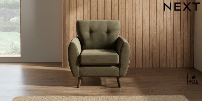 7.2.10 Wilson Buttoned Back Armchair Fine Chenille Easy Clean Dark Moss Green Retro Tapered - Mid | Made Click here to use our website with more accessibility support, for example screen readers