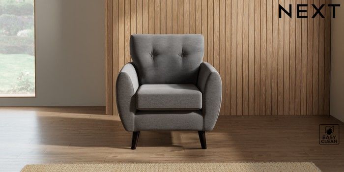 7.2.10 Wilson Buttoned Back Armchair Fine Chenille Easy Clean Dark Smoke Grey Retro Tapered - Dark | Made Click here to use our website with more accessibility support, for example screen readers