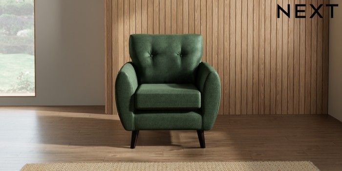 7.2.10 Wilson Buttoned Back Armchair Luxe Chenille Dark Green Retro Tapered - Dark | Made Click here to use our website with more accessibility support, for example screen readers