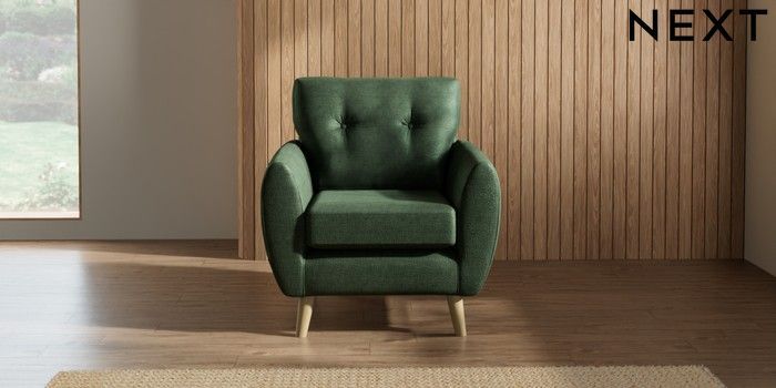 7.2.10 Wilson Buttoned Back Armchair Luxe Chenille Dark Green Retro Tapered - Light | Made Click here to use our website with more accessibility support, for example screen readers