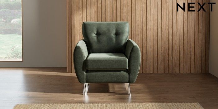 7.2.10 Wilson Buttoned Back Armchair Luxe Chenille Mid Green Metal Tapered - Chrome | Made Click here to use our website with more accessibility support, for example screen readers