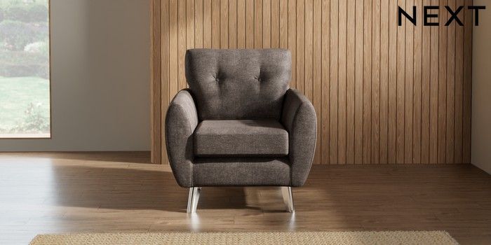 7.2.10 Wilson Buttoned Back Armchair Plush Chenille Mink Brown Metal Tapered - Chrome | Made Click here to use our website with more accessibility support, for example screen readers