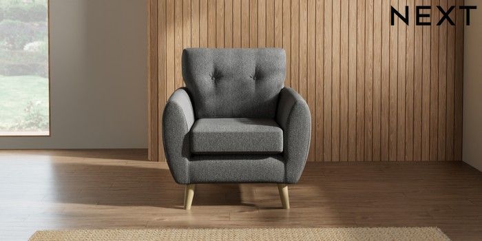 7.2.10 Wilson Buttoned Back Armchair Tweedy Chenille Dark Grey Retro Tapered - Light | Made Click here to use our website with more accessibility support, for example screen readers