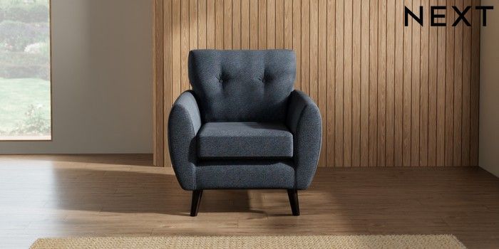 7.2.10 Wilson Buttoned Back Armchair Tweedy Chenille Navy Blue Retro Tapered - Dark | Made Click here to use our website with more accessibility support, for example screen readers