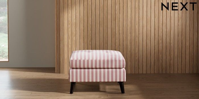 7.2.10 Wilson Buttoned Back Footstool Bold Chenille Stripe Dark Pink Retro Tapered - Dark | Made Click here to use our website with more accessibility support, for example screen readers