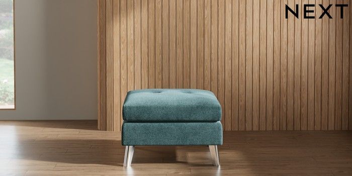 7.2.10 Wilson Buttoned Back Footstool Chunky Chenille Mid Teal Green Metal Tapered - Chrome | Made Click here to use our website with more accessibility support, for example screen readers