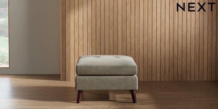 7.2.10 Wilson Buttoned Back Footstool Chunky Marl Light Olive Green Retro Tapered - Dark Brown | Made Click here to use our website with more accessibility support, for example screen readers