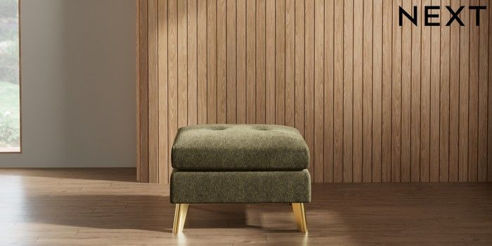 7.2.10 Wilson Buttoned Back Footstool Cotswold Chenille Dark Green Metal Tapered - Gold | Made Click here to use our website with more accessibility support, for example screen readers