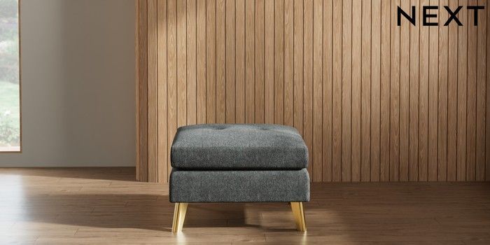 7.2.10 Wilson Buttoned Back Footstool Cotswold Chenille Dark Grey Metal Tapered - Gold | Made Click here to use our website with more accessibility support, for example screen readers