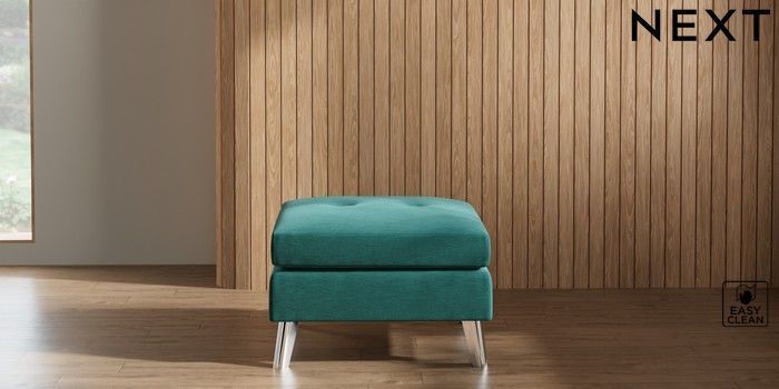 7.2.10 Wilson Buttoned Back Footstool Fine Chenille Easy Clean Dark Juniper Green Metal Tapered - Chrome | Made Click here to use our website with more accessibility support, for example screen readers