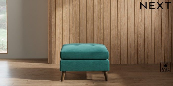 7.2.10 Wilson Buttoned Back Footstool Fine Chenille Easy Clean Dark Juniper Green Retro Tapered - Mid | Made Click here to use our website with more accessibility support, for example screen readers