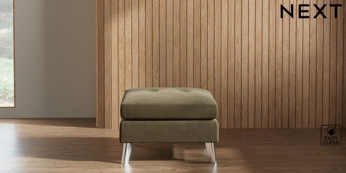 7.2.10 Wilson Buttoned Back Footstool Fine Chenille Easy Clean Dark Moss Green Metal Tapered - Chrome | Made Click here to use our website with more accessibility support, for example screen readers
