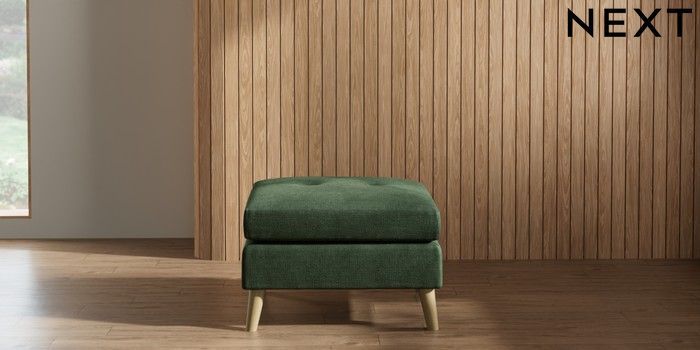 7.2.10 Wilson Buttoned Back Footstool Luxe Chenille Dark Green Retro Tapered - Light | Made Click here to use our website with more accessibility support, for example screen readers