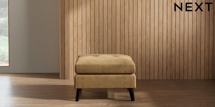 7.2.10 Wilson Buttoned Back Footstool Luxe Chenille Honey Yellow Retro Tapered - Dark | Made Click here to use our website with more accessibility support, for example screen readers