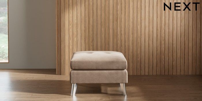 7.2.10 Wilson Buttoned Back Footstool Luxe Chenille Mid Natural Metal Tapered - Chrome | Made Click here to use our website with more accessibility support, for example screen readers