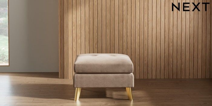 7.2.10 Wilson Buttoned Back Footstool Luxe Chenille Mid Natural Metal Tapered - Gold | Made Click here to use our website with more accessibility support, for example screen readers