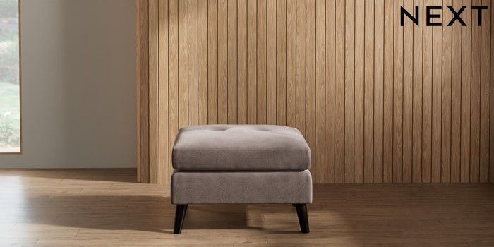 7.2.10 Wilson Buttoned Back Footstool Luxe Chenille Mink Brown Retro Tapered - Dark | Made Click here to use our website with more accessibility support, for example screen readers