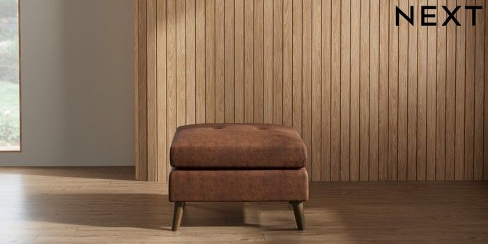 7.2.10 Wilson Buttoned Back Footstool Monza Faux Leather Easy Clean Chestnut Brown Retro Tapered - Mid | Made Click here to use our website with more accessibility support, for example screen readers