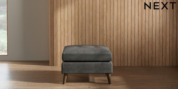 7.2.10 Wilson Buttoned Back Footstool Monza Faux Leather Easy Clean Dark Grey Retro Tapered - Mid | Made Click here to use our website with more accessibility support, for example screen readers