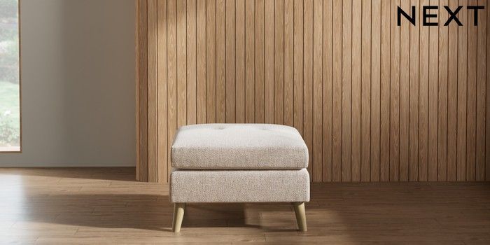 7.2.10 Wilson Buttoned Back Footstool Multi Weave Mid Natural Retro Tapered - Light | Made Click here to use our website with more accessibility support, for example screen readers