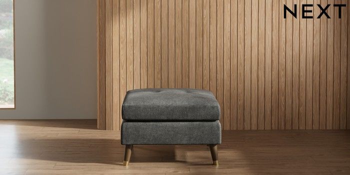 7.2.10 Wilson Buttoned Back Footstool Plush Chenille Dark Grey Low Retro Tapered Metal Cap - Mid | Made Click here to use our website with more accessibility support, for example screen readers