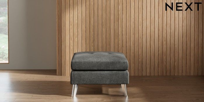 7.2.10 Wilson Buttoned Back Footstool Plush Chenille Dark Grey Metal Tapered - Chrome | Made Click here to use our website with more accessibility support, for example screen readers