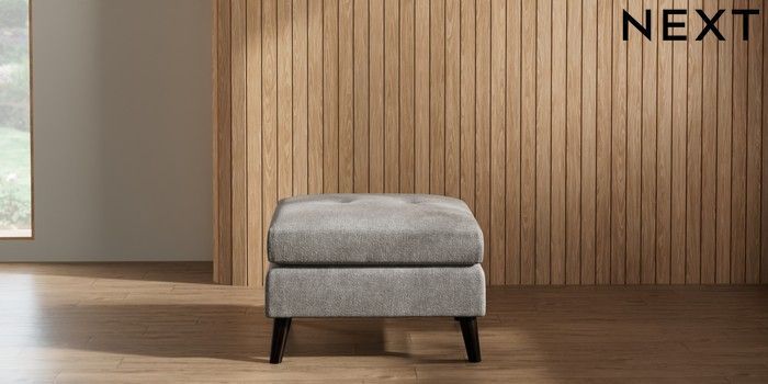 7.2.10 Wilson Buttoned Back Footstool Plush Chenille Light Grey Retro Tapered - Dark | Made Click here to use our website with more accessibility support, for example screen readers