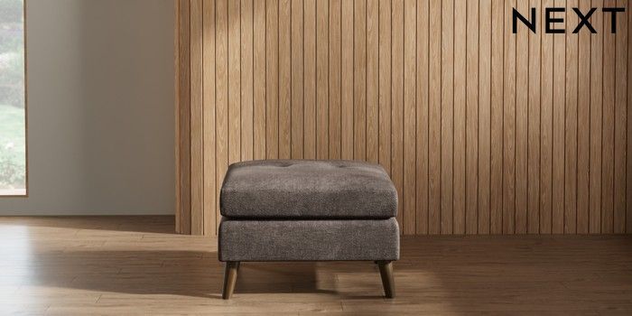 7.2.10 Wilson Buttoned Back Footstool Plush Chenille Mink Brown Retro Tapered - Mid | Made Click here to use our website with more accessibility support, for example screen readers