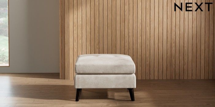 7.2.10 Wilson Buttoned Back Footstool Plush Chenille Oyster Retro Tapered - Dark | Made Click here to use our website with more accessibility support, for example screen readers