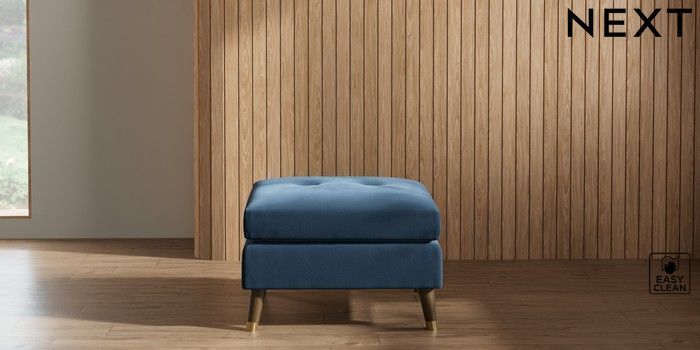 7.2.10 Wilson Buttoned Back Footstool Plush Velvet Easy Clean Airforce Blue Low Retro Tapered Metal Cap - Mid | Made Click here to use our website with more accessibility support, for example screen readers