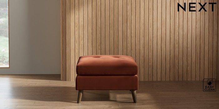 7.2.10 Wilson Buttoned Back Footstool Plush Velvet Easy Clean Ginger Orange Retro Tapered - Mid | Made Click here to use our website with more accessibility support, for example screen readers