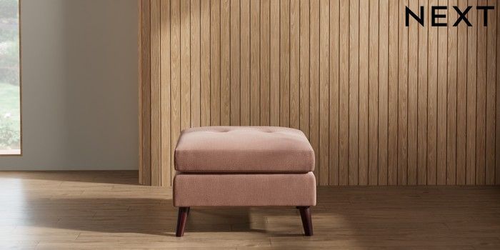 7.2.10 Wilson Buttoned Back Footstool Relaxed Linen Look Light Rust Brown Retro Tapered - Dark Brown | Made Click here to use our website with more accessibility support, for example screen readers