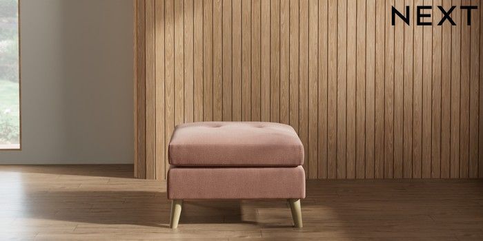 7.2.10 Wilson Buttoned Back Footstool Relaxed Linen Look Light Rust Brown Retro Tapered - Light | Made Click here to use our website with more accessibility support, for example screen readers