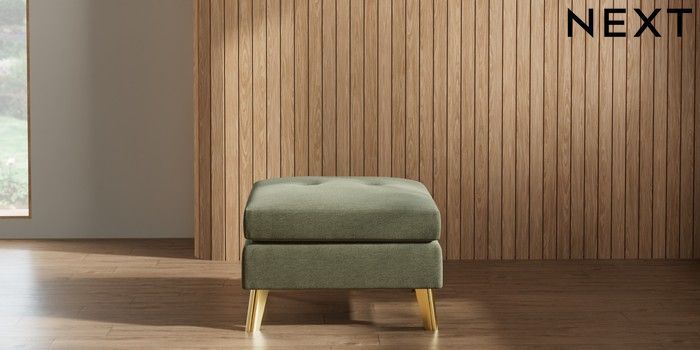 7.2.10 Wilson Buttoned Back Footstool Ripple Chenille Mid Moss Green Metal Tapered - Gold | Made Click here to use our website with more accessibility support, for example screen readers