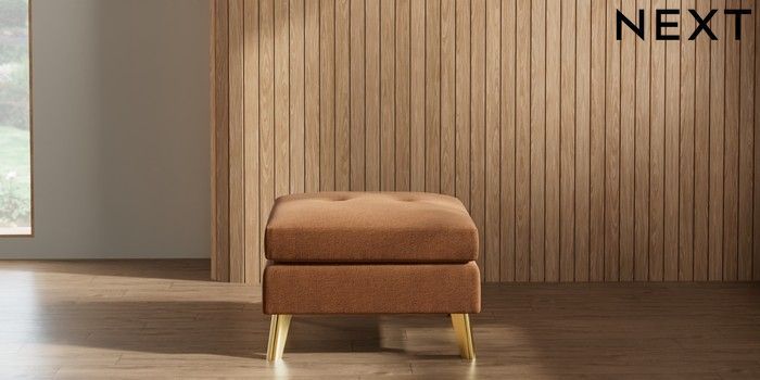 7.2.10 Wilson Buttoned Back Footstool Ripple Chenille Mid Rust Brown Metal Tapered - Gold | Made Click here to use our website with more accessibility support, for example screen readers