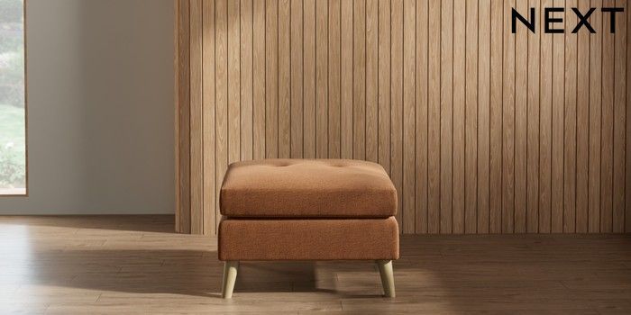 7.2.10 Wilson Buttoned Back Footstool Ripple Chenille Mid Rust Brown Retro Tapered - Light | Made Click here to use our website with more accessibility support, for example screen readers