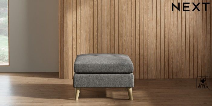 7.2.10 Wilson Buttoned Back Footstool Tweedy Blend Easy Clean Dark Grey Retro Tapered - Light | Made Click here to use our website with more accessibility support, for example screen readers