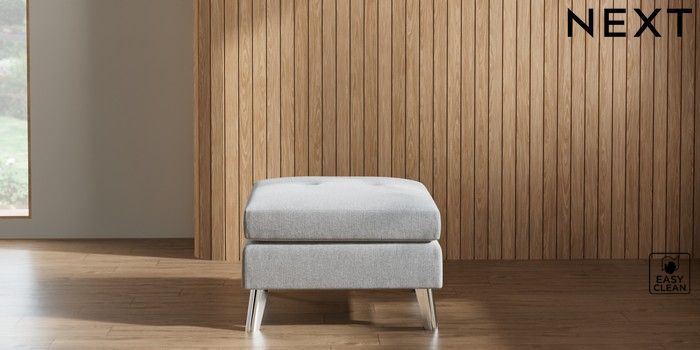 7.2.10 Wilson Buttoned Back Footstool Tweedy Blend Easy Clean Light Silver Grey Metal Tapered - Chrome | Made Click here to use our website with more accessibility support, for example screen readers