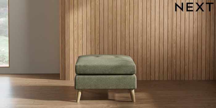 7.2.10 Wilson Buttoned Back Footstool Tweedy Chenille Mid Moss Green Retro Tapered - Light | Made Click here to use our website with more accessibility support, for example screen readers